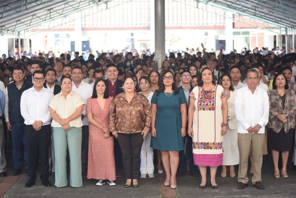 En la explanada de la Benemerita Escuela Normal Veracruzana Enrique C. Rebsamen se realizo el encuentro, presidido por la subsecretaria de Educacion Básica del Gobierno de México, Angelica Noemí Juarez Perez; la titular de la SEV, Claudia Tello Espinosa, y la subsecretaria de Prevención y Participación Ciudadana de la Secretaría de Seguridad Pública (SSP), Ciria Ivonne Marquez Talamantes.