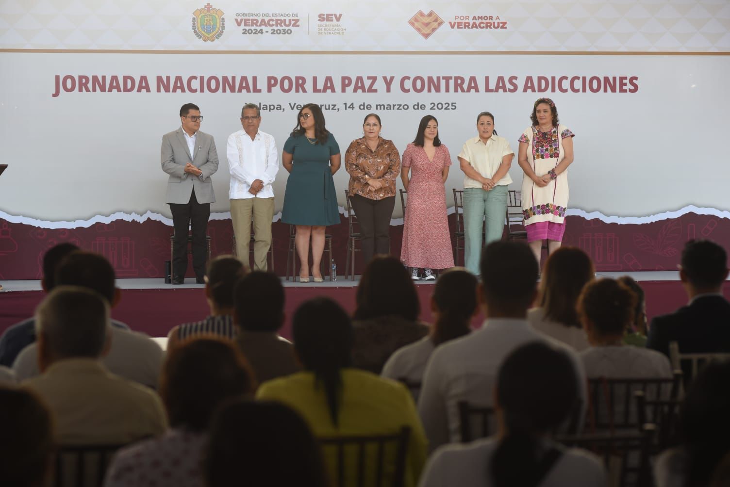 En la explanada de la Benemerita Escuela Normal Veracruzana Enrique C. Rebsamen se realizo el encuentro, presidido por la subsecretaria de Educacion Básica del Gobierno de México, Angelica Noemí Juarez Perez; la titular de la SEV, Claudia Tello Espinosa, y la subsecretaria de Prevención y Participación Ciudadana de la Secretaría de Seguridad Pública (SSP), Ciria Ivonne Marquez Talamantes.