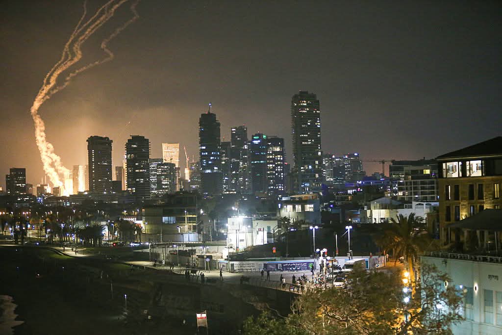 Las fotografías captaron los misiles desde territorio israelí —en Ashkelon, Tel Aviv y Jerusalén— mientras el sistema Iron Dome interceptaba la mayoría en vuelo  .