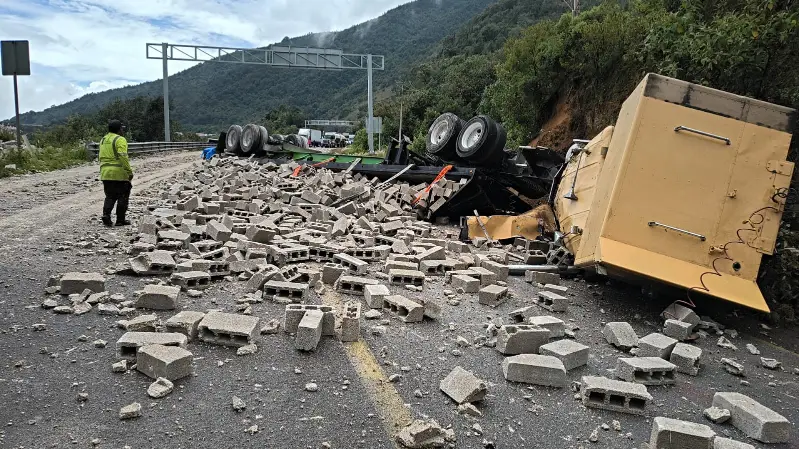 De acuerdo con información de Caminos y Puentes Federales (CAPUFE), el incidente ocurrió cuando el conductor de un camión tipo plataforma, cargado con tabique para la construcción, descendía por la zona.