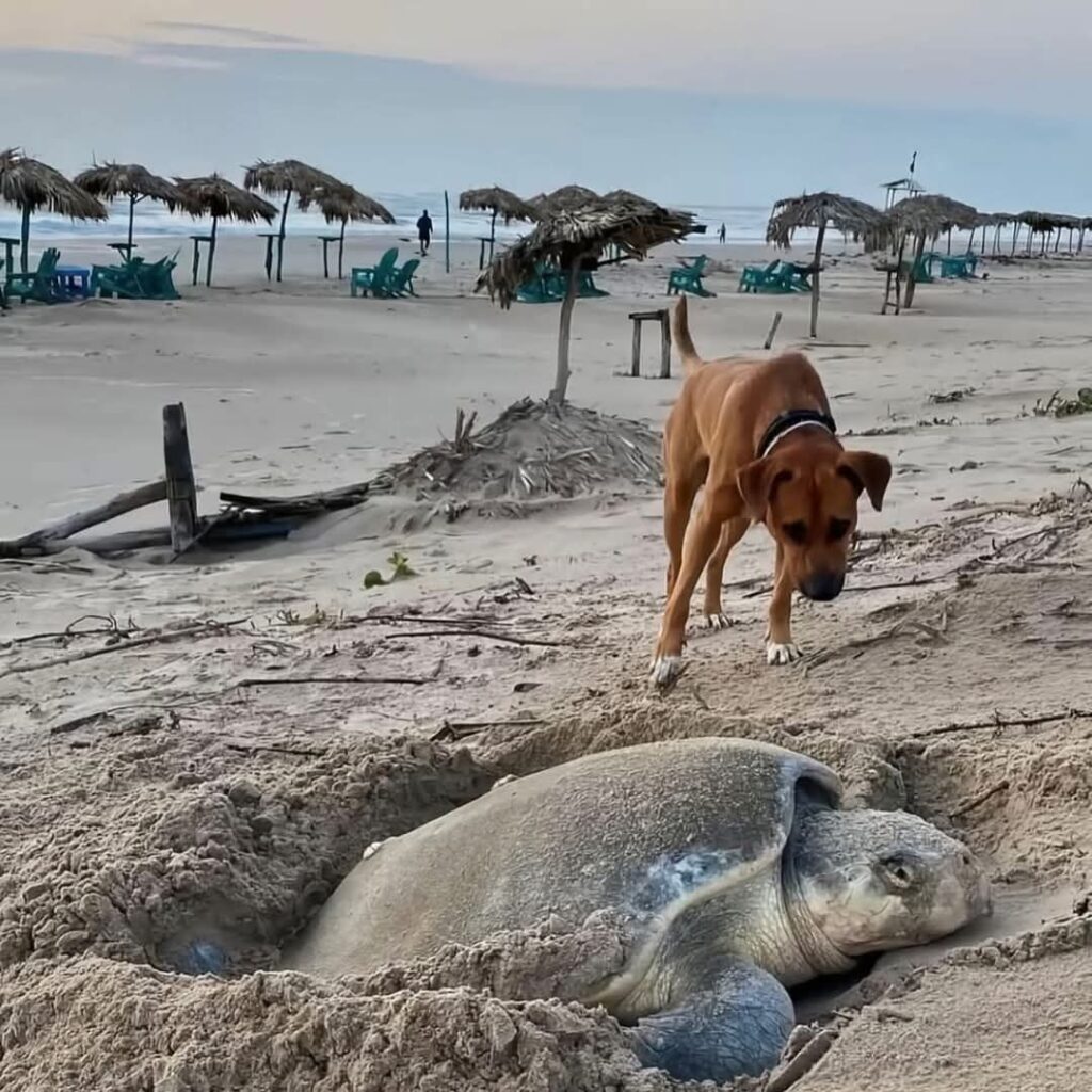🥹🐶🐢Un perrito callejero llamado “Solovino” se ha convertido en un héroe al ayudar a crías de tortugas marinas a llegar al mar en la playa de Miramar en Tamaulipas, México.