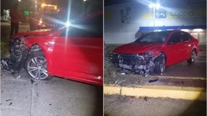 La unidad presuntamente habría sido chocada por alcance, debido a que parte de su cajuela tenía unos golpes, mientras que una porción izquierda del cofre, en el lado del chofer, quedó destrozada, incluida la llanta.