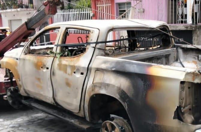 Después de algunas horas de mantenerlos retenidos, los presuntos talamontes los pusieron en libertad y prendieron fuego a una camioneta marca Mitsubishi L200, de color blanco, con logotipos oficiales de la FGR y de modelo reciente, la cual terminó reducida en cenizas.