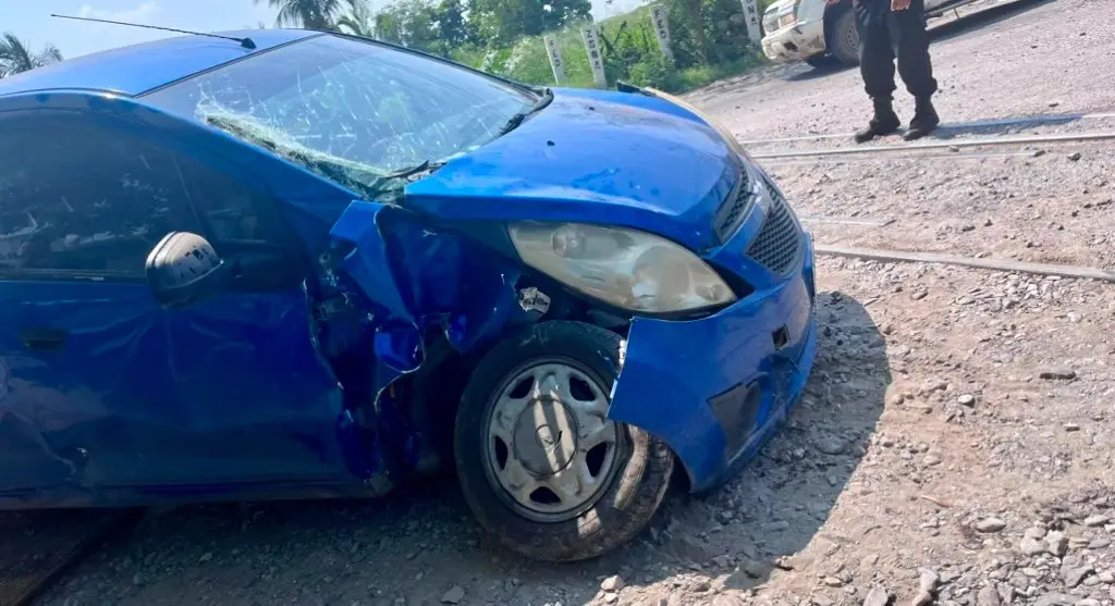 La tarde de este lunes un vehículo compacto fue arrastrado por el ferrocarril cuando salía del fraccionamiento Palma Real en dirección a la carretera federal Veracruz-Xalapa